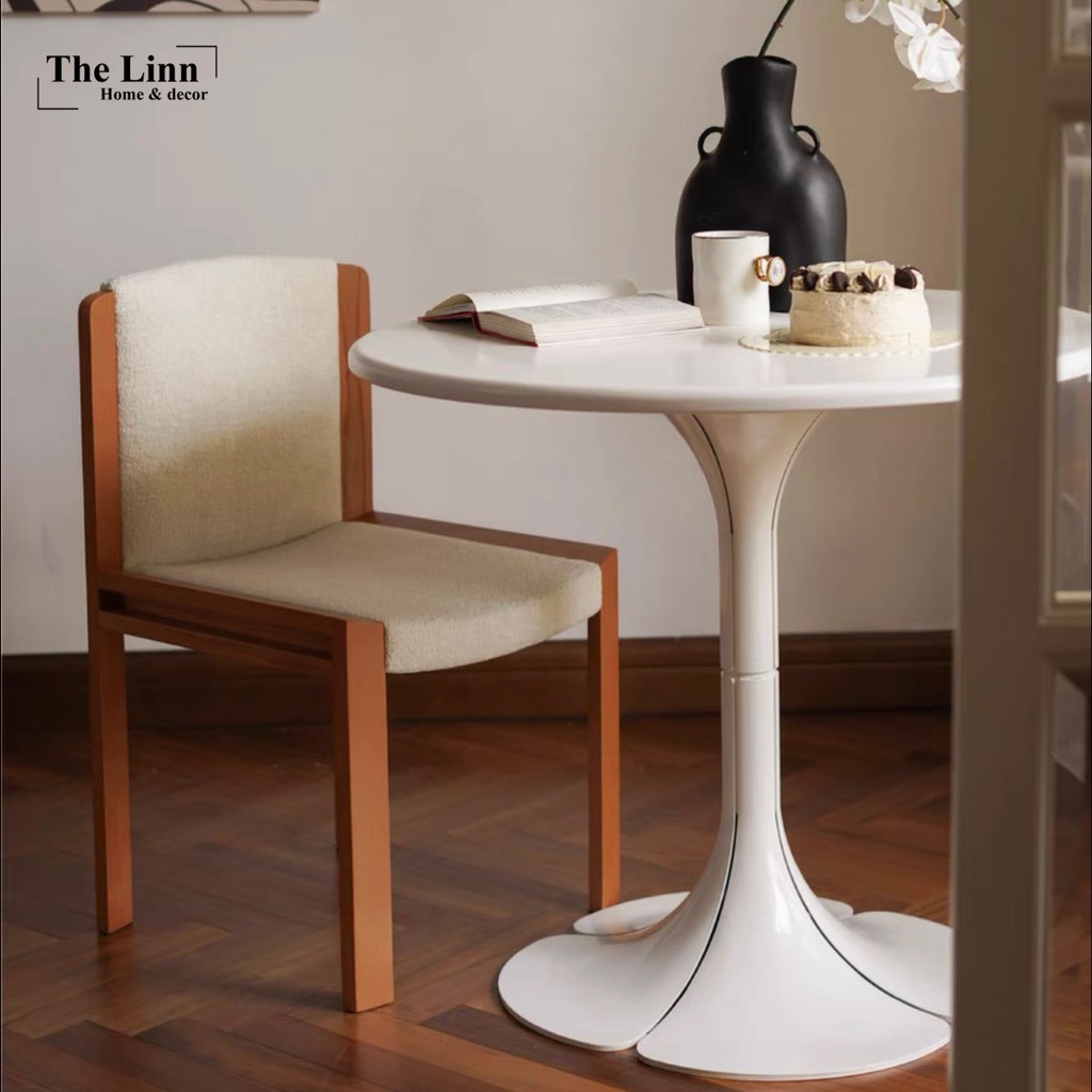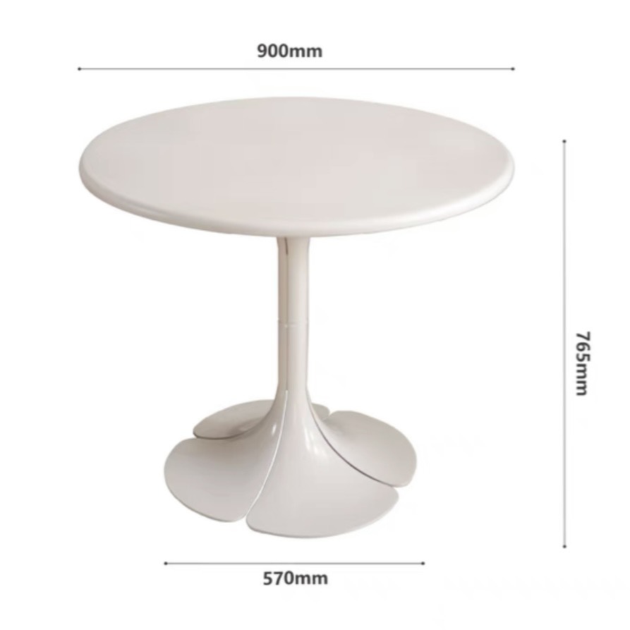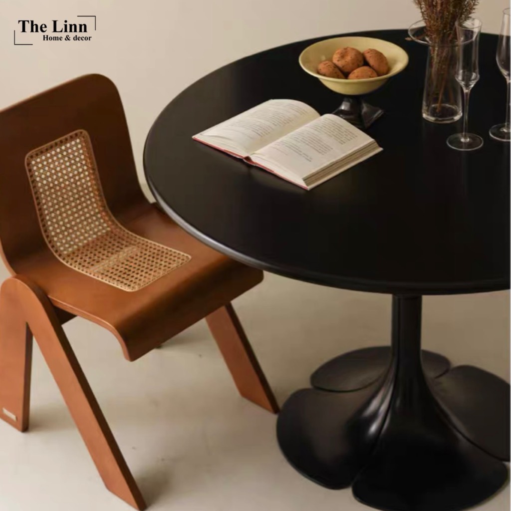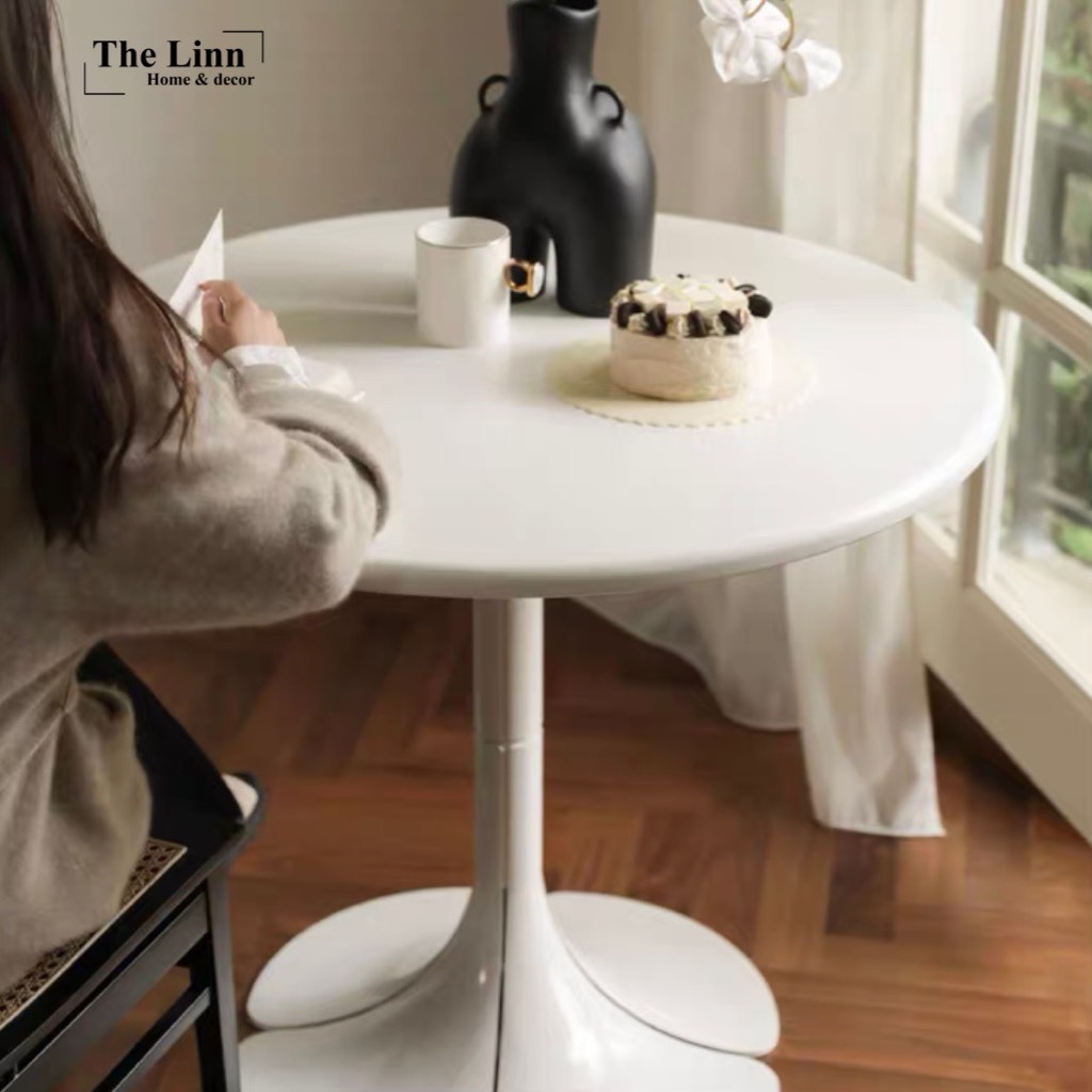 𝑷𝒆𝒕𝒂𝒊𝒍𝒔 𝑻𝒂𝒃𝒍𝒆 với thiết kế bàn gỗ tròn basic, chân tạo hình cánh hoa độc đáo với màu đen/trắng nổi bật.