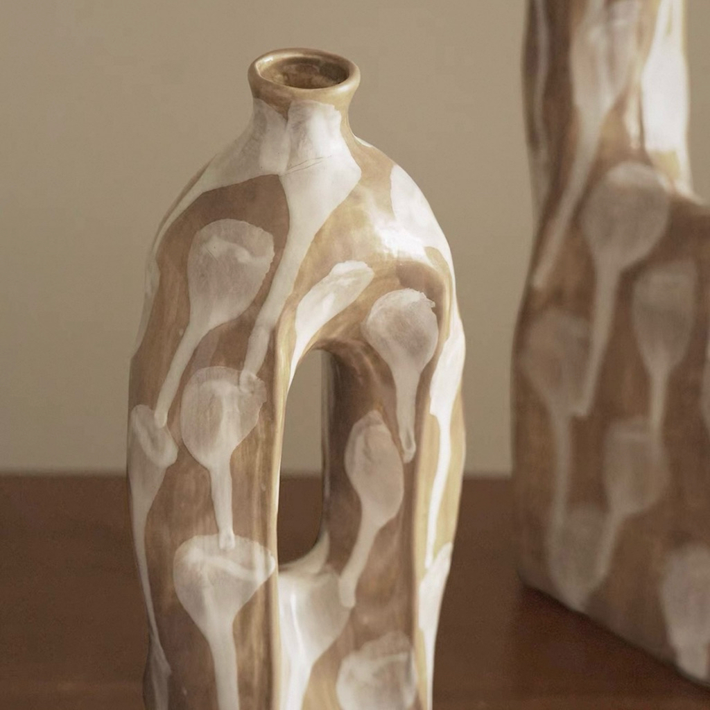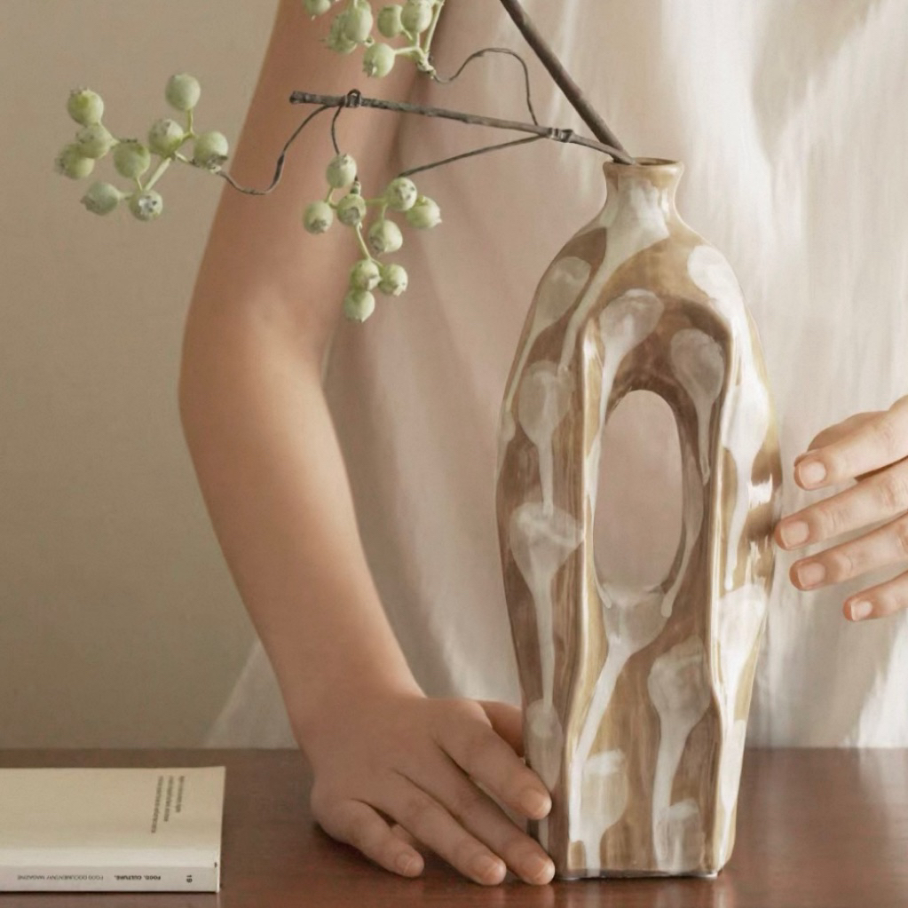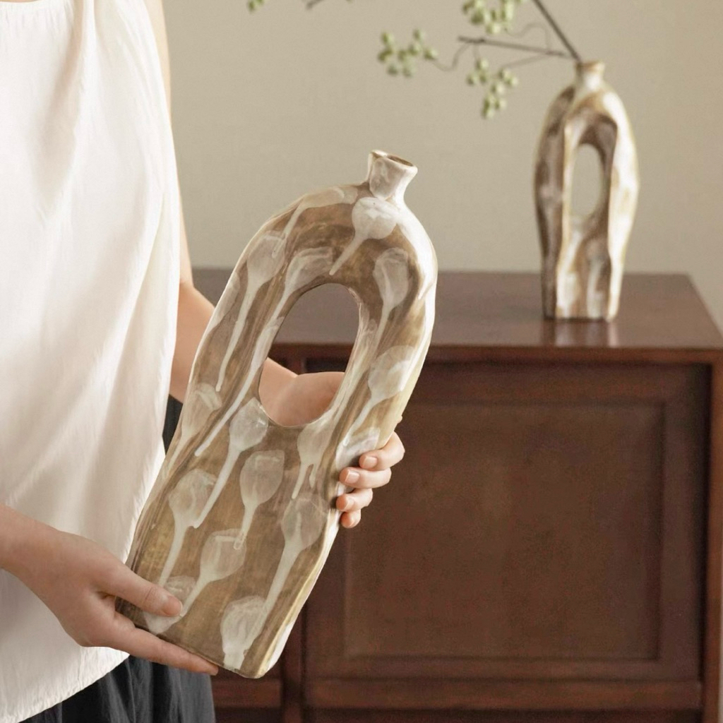 𝐁𝐢̀𝐧𝐡 𝐇𝐨𝐚 𝐀𝐋𝐌𝐀 – 𝐓𝐢𝐧𝐡 𝐇𝐨𝐚 𝐍𝐠𝐡𝐞̣̂ 𝐓𝐡𝐮𝐚̣̂𝐭 𝐓𝐨̂́𝐢 𝐆𝐢𝐚̉𝐧Mang hơi thở vintage châu Âu pha lẫn nét đương đại tinh tế, 𝐁𝐢̀𝐧𝐡 𝐇𝐨𝐚 𝐀𝐋𝐌𝐀 là lựa chọn hoàn hảo cho những ai yêu thích không gian sống thanh lịch và có chiều sâu nghệ thuật.——————▪️Thiết kế độc bản: Đường cong mềm mại cùng khoảng rỗng giữa thân bình tạo nên điểm nhấn nghệ thuật lạ mắt.▪️Chất liệu cao cấp: Gốm sứ nhập khẩu, phủ men thủ công tinh xảo▪️Màu sắc trung tính: Gam be – nâu tự nhiên▪️Kích thước: * Lớn: 14 × 7 × 36 cm (miệng 2.5 cm) * Nhỏ: 11 × 6 × 27 cm (miệng 2.5 cm)▪️Phù hợp cho: Phòng khách – phòng ngủ – góc làm việc – quán cà phê phong cách nghệ thuật.