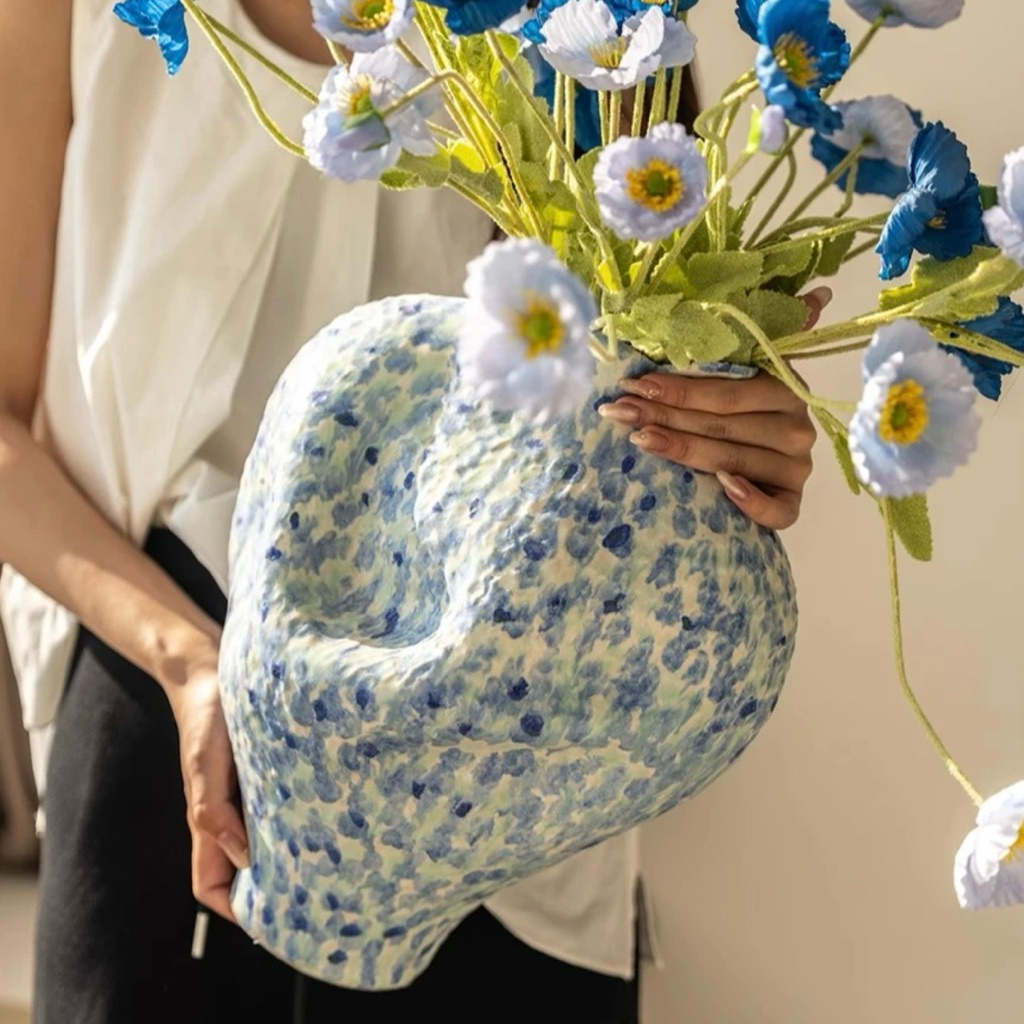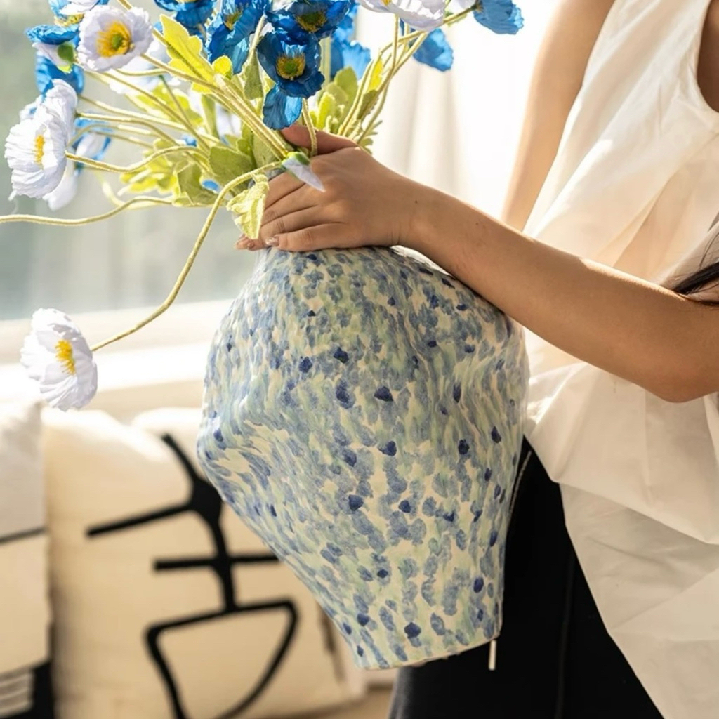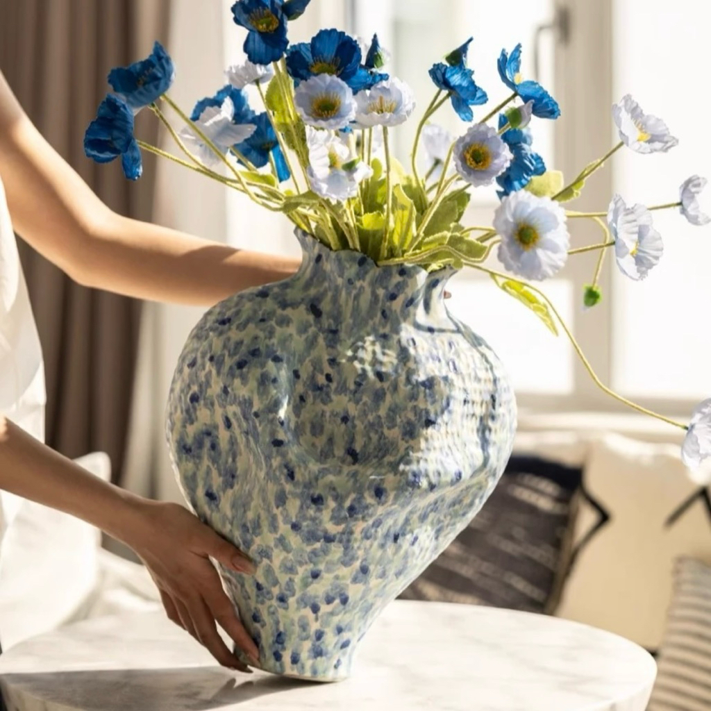 𝐁𝐢̀𝐧𝐡 𝐡𝐨𝐚 𝐍𝐀𝐎𝐌𝐈 𝐧𝐡𝐚̣̂𝐩 𝐤𝐡𝐚̂̉𝐮 – 𝐏𝐡𝐨𝐧𝐠 𝐜𝐚́𝐜𝐡 𝐧𝐠𝐡𝐞̣̂ 𝐭𝐡𝐮𝐚̣̂𝐭 đ𝐨̣̂𝐜 đ𝐚́𝐨Mang hơi thở của nghệ thuật đương đại, 𝐁𝐢̀𝐧𝐡 𝐇𝐨𝐚 𝐍𝐀𝐎𝐌𝐈 là điểm nhấn hoàn hảo cho không gian sống hiện đại. Với tạo hình mềm mại, màu sắc loang phối thủ công và chất liệu gốm nung cao cấp, 𝐍𝐀𝐎𝐌𝐈 không chỉ là một chiếc bình, mà là một tác phẩm nghệ thuật độc bản.——————▪️Chất liệu: Gốm sứ, bền màu, chống rạn nứt.▪️Kỹ thuật: Thủ công – vẽ tay từng đường nét, mỗi sản phẩm là duy nhất.▪️Màu sắc: xanh vàng▪️Kích thước: 23*28*34cm▪️Trọng lượng: 3.8kg▪️Gợi ý: Có thể dùng cắm hoa tươi, hoa khô hoặc làm đồ decor trang trí.▪️Phù hợp: trưng bày phòng khách, quán cà phê, studio hoặc không gian nghệ thuật.💬 Lưu ý:* Sản phẩm được làm thủ công, có thể xuất hiện một vài vết khí nhỏ tự nhiên – tạo nên nét riêng biệt cho mỗi chiếc bình.* Màu sắc có thể chênh lệch nhẹ tùy ánh sáng và góc nhìn, nhưng tổng thể luôn đảm bảo tính thẩm mỹ cao.——————𝐓𝐡𝐞 𝐋𝐢𝐧𝐧𝐞𝐞 | 𝐕𝐞̃ 𝐧𝐡𝐮̛̃𝐧𝐠 𝐆𝐢𝐚̂́𝐜 𝐦𝐨̛#thelinndecor #decor #home #furniture