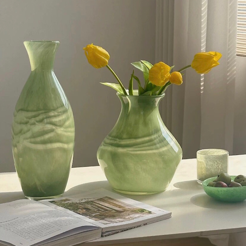 𝐁𝐢̀𝐧𝐡 𝐡𝐨𝐚 𝐭𝐡𝐮𝐲̉ 𝐭𝐢𝐧𝐡 𝐆𝐫𝐞𝐞𝐧 𝐂𝐥𝐨𝐮𝐝 𝐧𝐡𝐚̣̂𝐩 𝐤𝐡𝐚̂̉𝐮 𝐜𝐚𝐨 𝐜𝐚̂́𝐩 / 𝐆𝐫𝐞𝐞𝐧 𝐂𝐥𝐨𝐮𝐝 𝐕𝐚𝐬𝐞▪️𝐁𝐢̀𝐧𝐡 𝐆𝐫𝐞𝐞𝐧 𝐂𝐥𝐨𝐮𝐝 là món đồ trang trí không thể thiếu trong không gian sống hiện đại, mang lại vẻ đẹp tinh tế và sang trọng, làm sáng bừng không gian sống.▪️Bình hoa với thuỷ tinh kết hợp cùng hoạ tiết đặc sắc, màu sắc đa dạng cuốn hút tạo nên vẻ đẹp thanh thoát, dễ dàng hoà hợp với mọi không gian từ cổ điển đến hiện đại. Dù trang trí trong phòng khách, phòng ngủ hay phòng ăn, bình hoa đều có thể dễ dàng hoà quyện vào không gian sống của bạn▪️𝐁𝐢̀𝐧𝐡 𝐆𝐫𝐞𝐞𝐧 𝐂𝐥𝐨𝐮𝐝 tuy có vẻ ngoài mong manh nhưng mang chất lượng cao có độ bền cao kết cấu dày dặn, chống trầy xước.__________________▪️Chất liệu: thuỷ tinh ▪️Màu sắc: xanh lá ngọc▪️Kích thước:- 12*21*25cm- 9*16*39cm▪️Tính năng: Cắm hoa, trang trí-decor___________________𝐓𝐡𝐞 𝐋𝐢𝐧𝐧𝐞𝐞 | 𝐕𝐞̃ 𝐧𝐡𝐮̛̃𝐧𝐠 𝐆𝐢𝐚̂́𝐜 𝐦𝐨̛