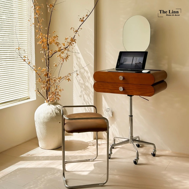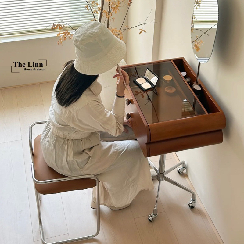 🏷 𝐁𝐚𝐥𝐥𝐞𝐭 𝐌𝐚𝐤𝐞𝐮𝐩 𝐓𝐚𝐛𝐥𝐞 với thiết kế bàn ghế trang điểm với đường nét cổ điển, tối giản với màu nâu/đen chủ đạo