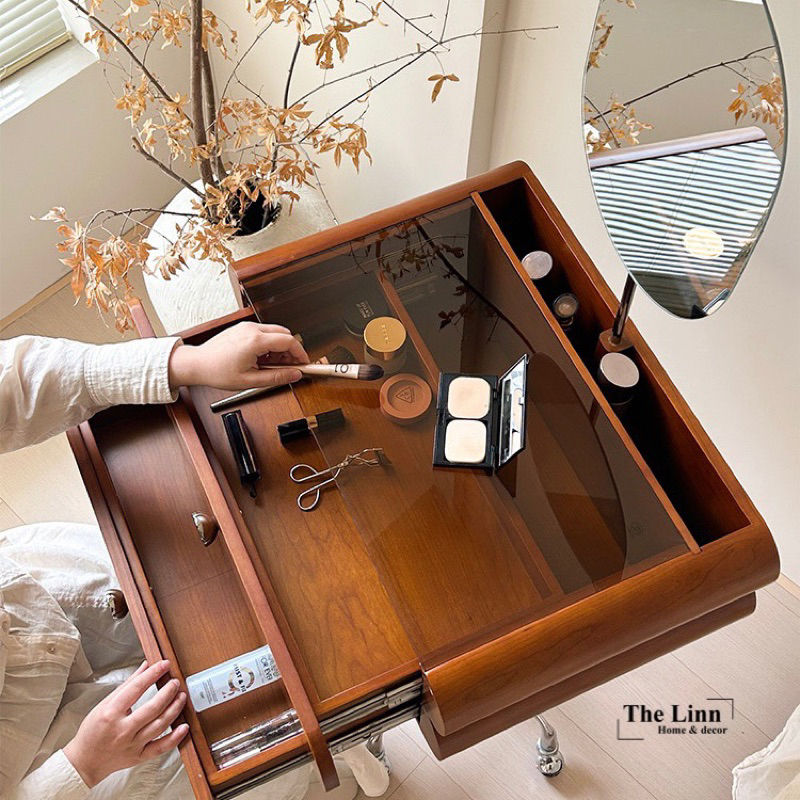 🏷 𝐁𝐞𝐢𝐠𝐞 𝐌𝐚𝐤𝐞𝐮𝐩 𝐓𝐚𝐛𝐥𝐞 có chất liệu gỗ anh đào nhập khẩu dày dặn, khung kim loại chắc chắn và mặt kính cường lực… là mẫu bàn phong cách Hàn được ưa chuộng, phù hợp hầu hết với mọi thiết kế không gian