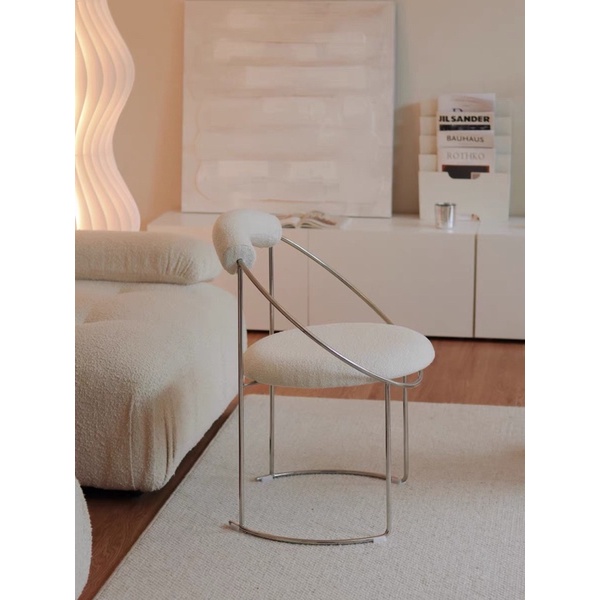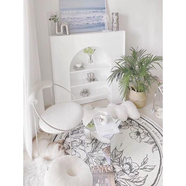 Với thiết kế đơn giản và phóng khoáng, chất liệu kim loại cùng vải nhung giả cừu cao cấp tạo cho người ngồi cảm giác thoải mái, ấm áp. Tone trắng phù hợp với những tín đồ yêu sự tối giản.