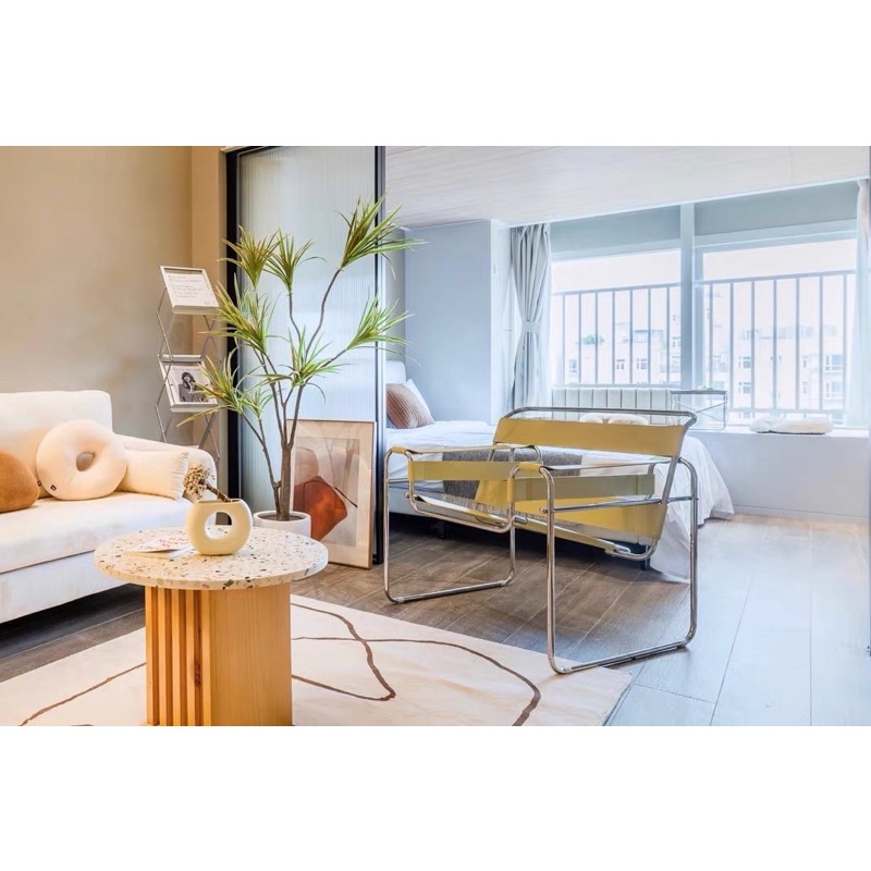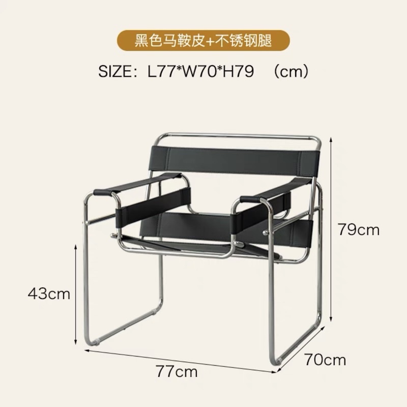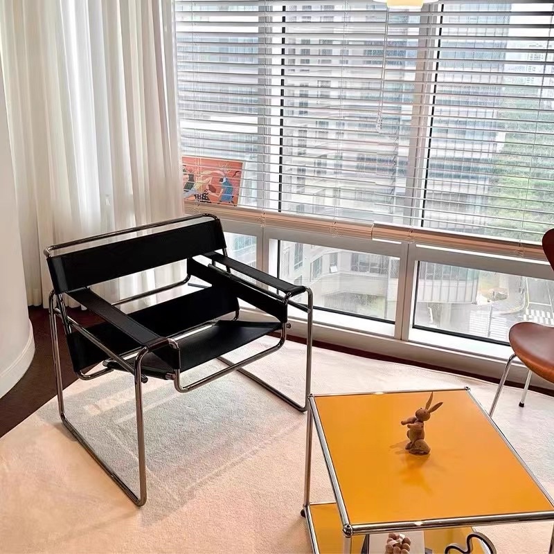 Chiếc ghế Wassily trở nên độc đáo hơn không chỉ vì chất liệu da yên cùng khung thép cao cấp mà còn vì sự kết hợp lạ mắt mang hơi hướng hiện đại, phóng khoáng.