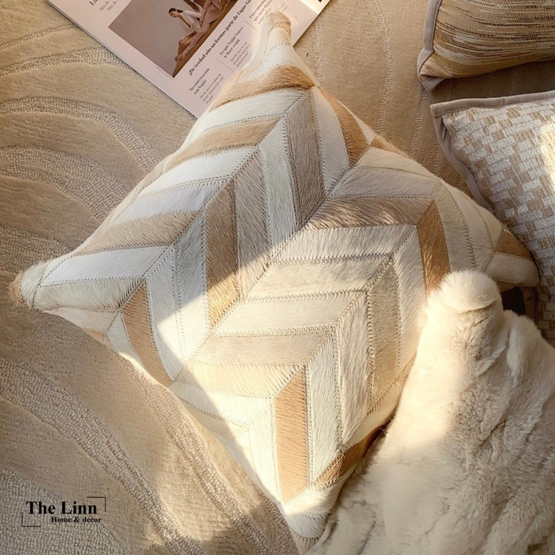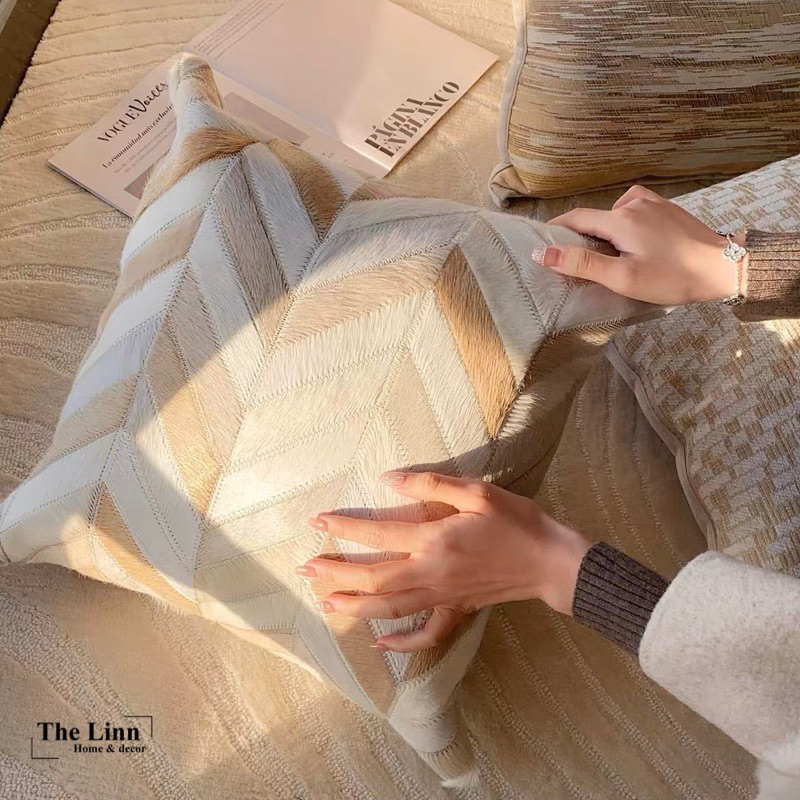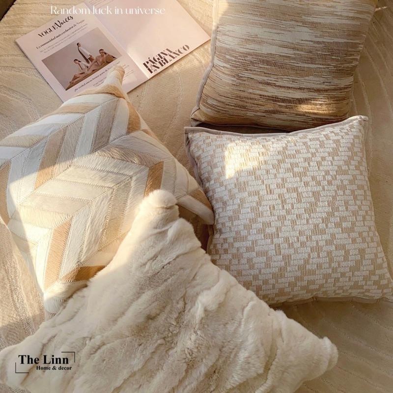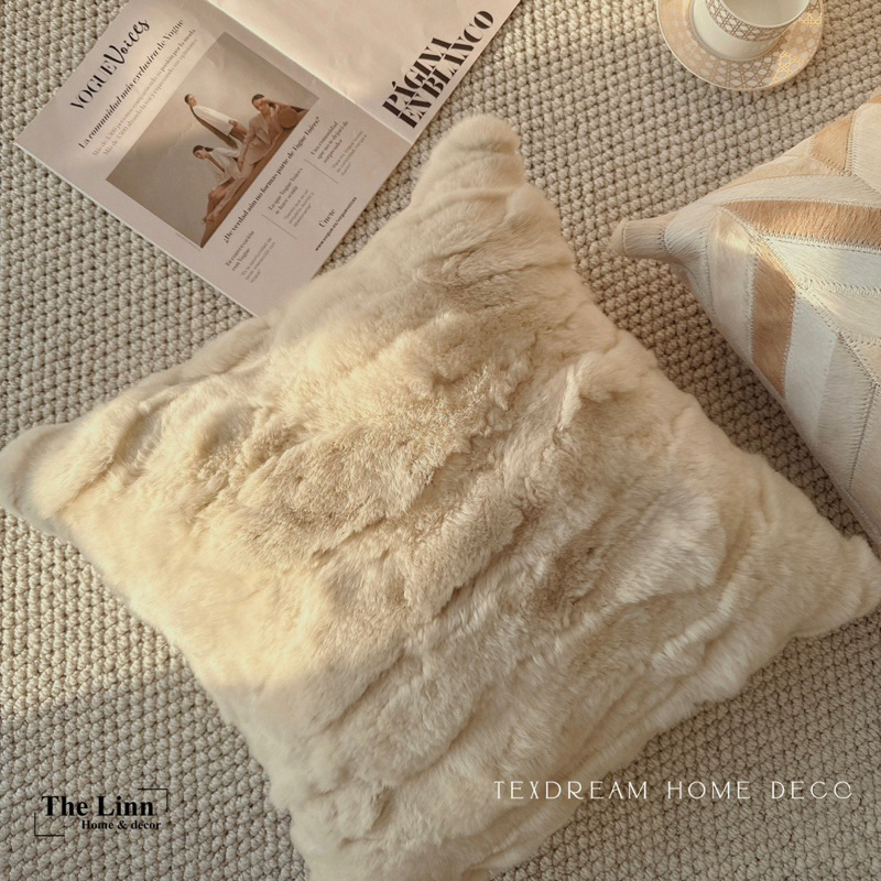 𝐆𝐫𝐚𝐢𝐧 𝐏𝐢𝐥𝐥𝐨𝐰 phong cách Hàn Quốc với thiết kế mẫu gối sofa lông dài mềm mại với tone nâu be nhẹ nhàng, nổi bật.