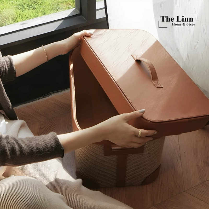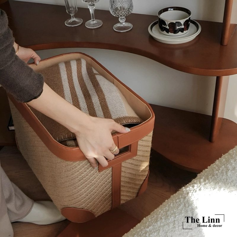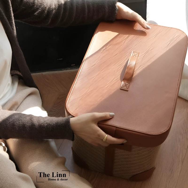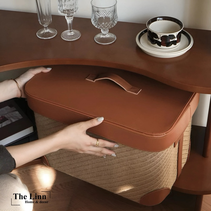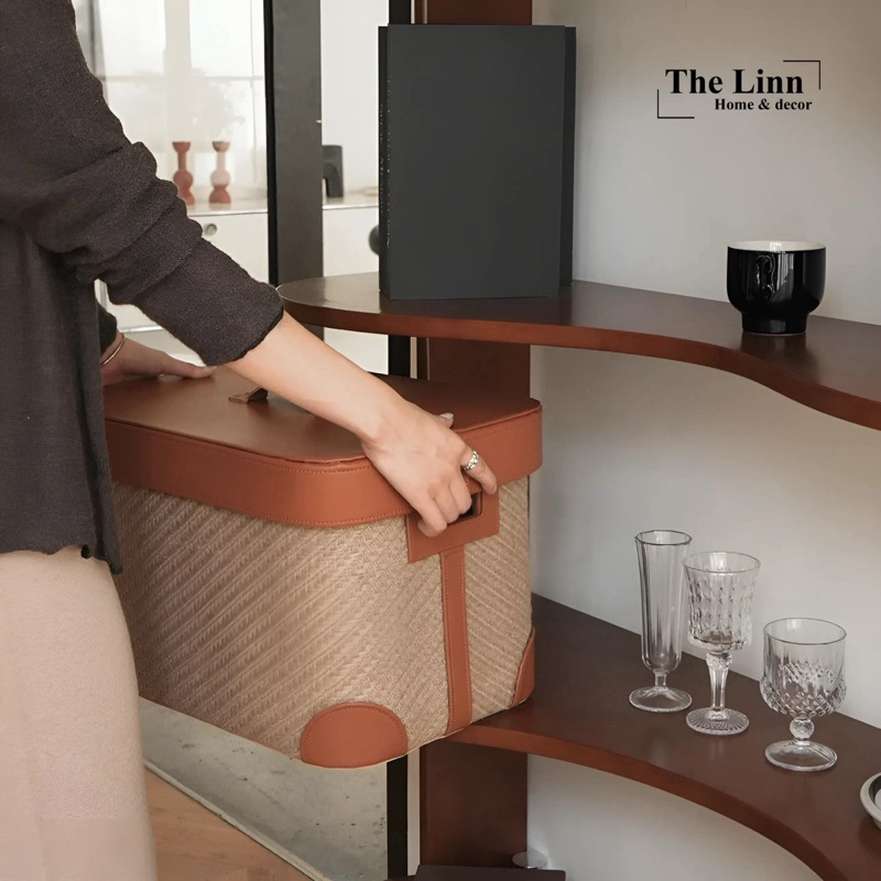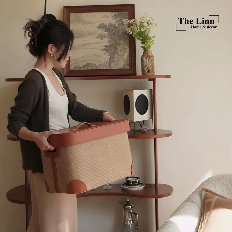 𝑶𝑫𝑰𝑳𝑬 𝑩𝒐𝒙 có chất liệu sợi đay dệt thủ công + nắp da bò dày dặn, chắn chắn và bền bỉ… là mẫu kệ được ưa chuộng, phù hợp hầu hết với mọi thiết kế không gian, quán Coffee, studio,…