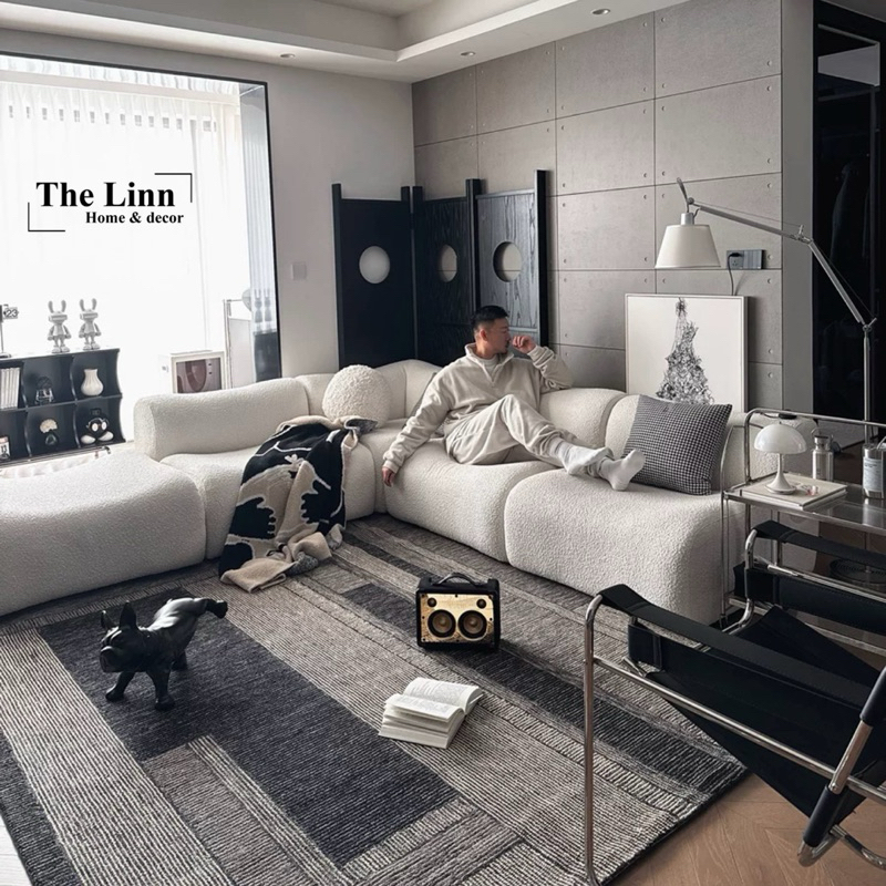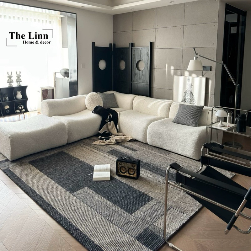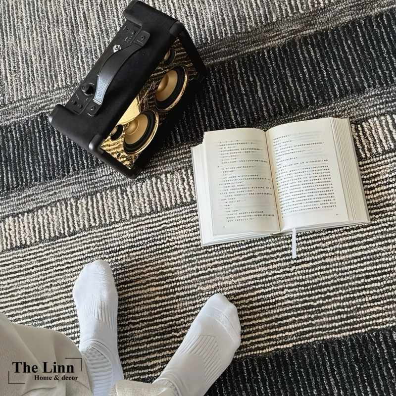 𝑪𝒂𝒎𝒊𝒍𝒍𝒆 𝑹𝒖𝒈 với thiết kế thảm hoạ tiết kẻ lượn sóng với màu sắc be trắng nhẹ nhàng, tinh tế và sang trọng.
