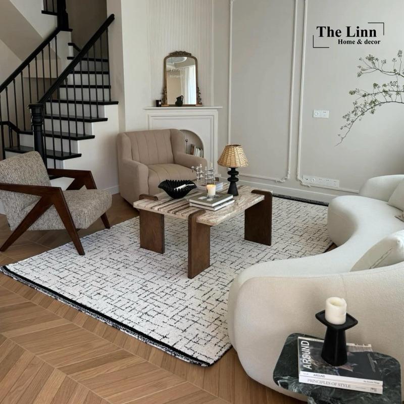 𝑻𝒉𝒂̉𝒎 𝒕𝒓𝒂̉𝒊 𝒔𝒂̀𝒏 𝑴𝒊𝒔𝒔 𝑪𝒐𝒄𝒐 𝒏𝒉𝒂̣̂𝒑 𝒌𝒉𝒂̂̉𝒖 𝒄𝒂𝒐 𝒄𝒂̂́𝒑 / 𝑴𝒊𝒔𝒔 𝑪𝒐𝒄𝒐 𝑹𝒖𝒈𝑴𝒊𝒔𝒔 𝑪𝒐𝒄𝒐 𝑹𝒖𝒈 với thiết kế thảm len dệt với màu sắc trắng mix đen độc đáo, tinh tế và sang trọng.𝑴𝒊𝒔𝒔 𝑪𝒐𝒄𝒐 𝑹𝒖𝒈 với công nghệ dệt thủ công cực kỳ tỉ mỉ và tinh xảo. Bề mặt thảm sợi Saipos dệt mềm mại êm ái. Thảm dày dặn hạn chế trơn trượt và xô lệch… là mẫu thảm sàn được ưa chuộng, phù hợp hầu hết với mọi thiết kế không gian, quán Coffee, studio,… Thảm với kết cấu chắc chắn, bền bỉ, phù hợp với mọi không gian.—————————▪️Chất liệu mặt thảm: sợi saipos▪️Chất liệu đế: Cotton + polyester ▪️Màu sắc: trắng đen▪️ Độ dày thảm (mm): 10▪️ Khổ thảm (cm): - 140*200- 160*240- 190*300- 240*350- 300*400▪️Tính năng: không hút bụi, không hút ẩm, không rụng lông, tuổi thọ cao, ít xê dịch, không mùi▪️Huớng dẫn vệ sinh: không giặt/không ủi và phơi đế trực tiếp dưới ánh nắng mặt trời, sử dụng máy hút bụi vệ sinh—————————𝐓𝐡𝐞 𝐋𝐢𝐧𝐧 𝐃𝐞𝐜𝐨𝐫 - 𝙺𝚑𝚘̛̉𝚒 𝚝𝚊̣𝚘 𝚐𝚒𝚊́ 𝚝𝚛𝚒̣ 𝚑𝚊̣𝚗𝚑 𝚙𝚑𝚞́𝚌