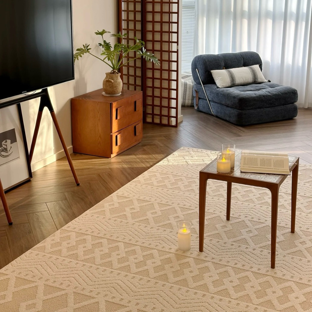 𝑻𝒉𝒂̉𝒎 𝒕𝒓𝒂̉𝒊 𝒔𝒂̀𝒏 𝑻𝒊𝒓𝒂 𝑮𝒖𝒎𝒂𝒓 𝒏𝒉𝒂̣̂𝒑 𝒌𝒉𝒂̂̉𝒖 𝒄𝒂𝒐 𝒄𝒂̂́𝒑 / 𝑻𝒊𝒓𝒂 𝑮𝒖𝒎𝒂𝒓 𝑹𝒖𝒈▫️ 𝑻𝒊𝒓𝒂 𝑮𝒖𝒎𝒂𝒓 𝑹𝒖𝒈 với màu sắc và hoạ tiết phong phú, tạo điểm nhấn tinh tế, giúp không gian sống của bạn thêm phần hiện đại và ấm cúng.▫️ 𝑻𝒊𝒓𝒂 𝑮𝒖𝒎𝒂𝒓 𝑹𝒖𝒈 với công nghệ dệt máy cực kỳ tỉ mỉ và tinh xảo. Bề mặt thảm mang chất liệu sợi polypropylen nhập khẩu mềm mại, bền bỉ. Đế thảm là cotton dệt thủ công dày dặn hạn chế trơn trượt và xô lệch khi sử dụng. Là mẫu thảm sàn được ưa chuộng, phù hợp hầu hết với mọi thiết kế không gian, quán Coffee, studio,… ▫️ 𝑻𝒊𝒓𝒂 𝑮𝒖𝒎𝒂𝒓 𝑹𝒖𝒈 trở thành một phần không thể thiếu trong không gian, mang đến cảm giác thoải mái và nâng tầm phong cách sống ủa bạn.▫️Thảm trải sàn với bề mặt mềm mại êm ái, phần đế được dệt chắc chắn không gây kích ứng cho da.————————— ▪️Chất liệu mặt trên: polypropylen▪️ Chất liệu đế: Dệt sợi công nghệ cotton, polyester, không dùng keo.▪️ Độ dày thảm (mm): 10▪️ Khổ thảm (cm): - 140*200- 160*240 - 160*300- 200*300- 300*400▪️Màu sắc: xanh trắng▪️Hướng dẫn vệ sinh: 1. Hút bụi thường xuyên là đủ để giữ cho thảm sạch sẽ;2. Đối với các vết bẩn cục bộ, hãy dùng khăn ẩm với chất tẩy rửa chuyên dụng để lau sạch. Vệ sinh ngay lập tức để ngăn ngừa vết bẩn cứng đầu hình thành.3. Để giặt thảm toàn bộ, bạn nên đến cửa hàng giặt thảm chuyên nghiệp hoặc thuê thợ chuyên nghiệp đến giặt thảm tại nhà.Giặt: Không giặt phần đáy / phơi khô ở nơi râm mát / không phơi trực tiếp dưới ánh nắng mặt trời / không tẩy / không ủi.—————————𝐌𝐈𝐘𝐀 𝐇𝐎𝐌𝐄 | 𝐓𝐡𝐢𝐞̂́𝐭 𝐤𝐞̂́ 𝐧𝐡𝐮̛̃𝐧𝐠 𝐆𝐢𝐚̂́𝐜 𝐦𝐨̛